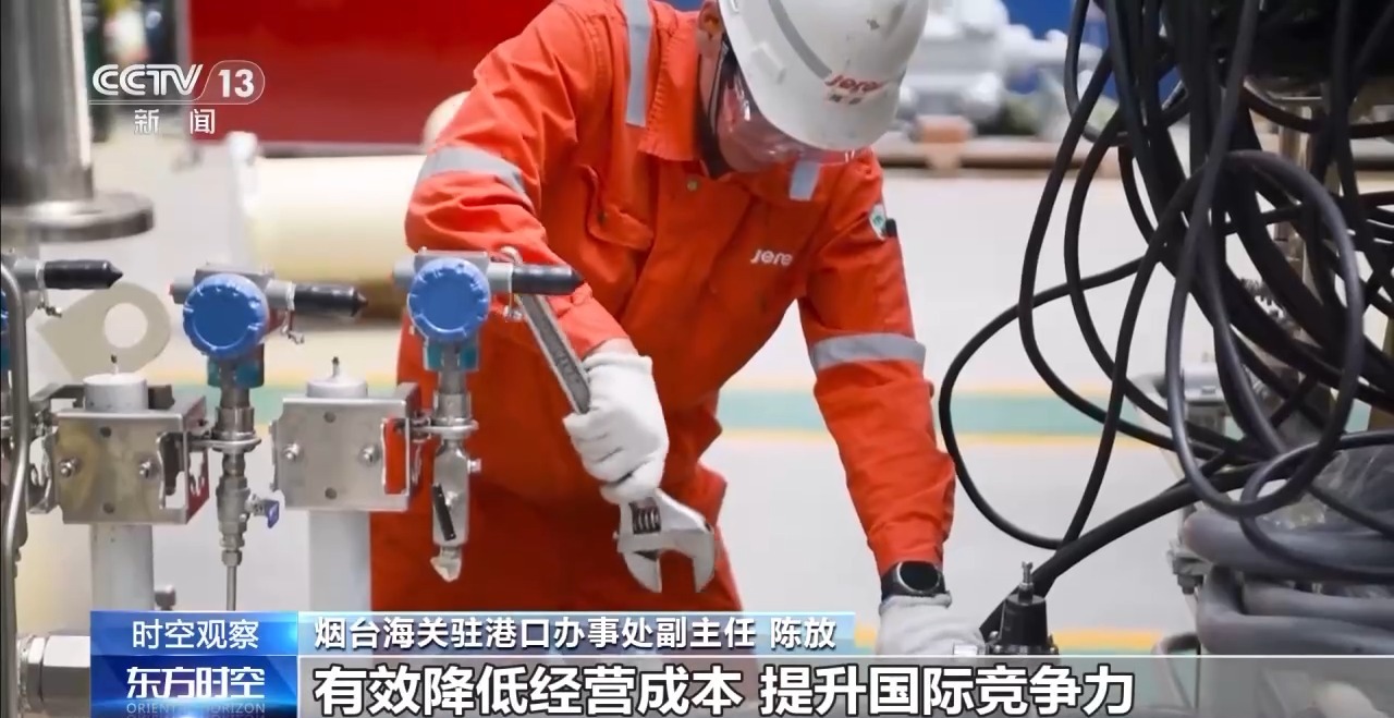 烟台海关驻港口办事处副主任 陈放:同时引导企业灵活开展设备保税仓储、简单加工和分拨配送,提高资金周转效率15%以上,有效降低经营成本,提升国际竞争力。