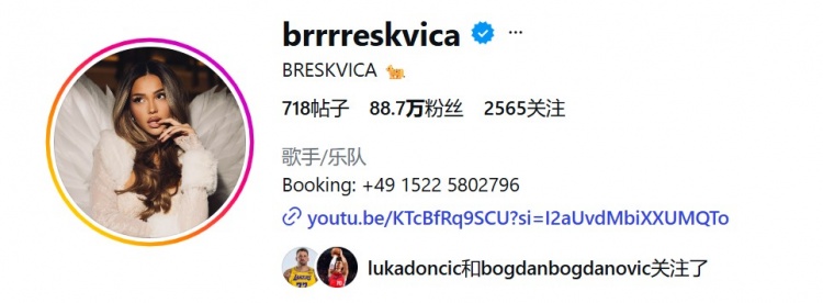 目前,安娜玛利亚的社媒上仍然有和东契奇的合照,都占比很少,且在最近的帖子中没有任何东契奇的影子。