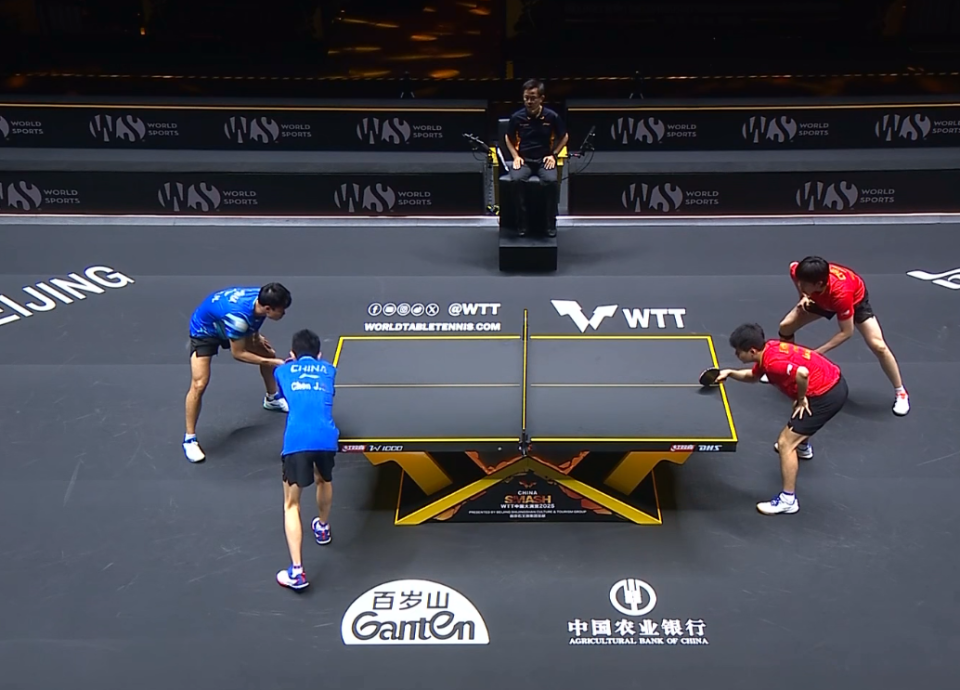 第三局双头组合3-0领先,豪俊组合连追2分,而双头组合又连续压制到8-3。此后,双头组合强势推进,以10-7拿到赛点,并以11-7终结比赛。