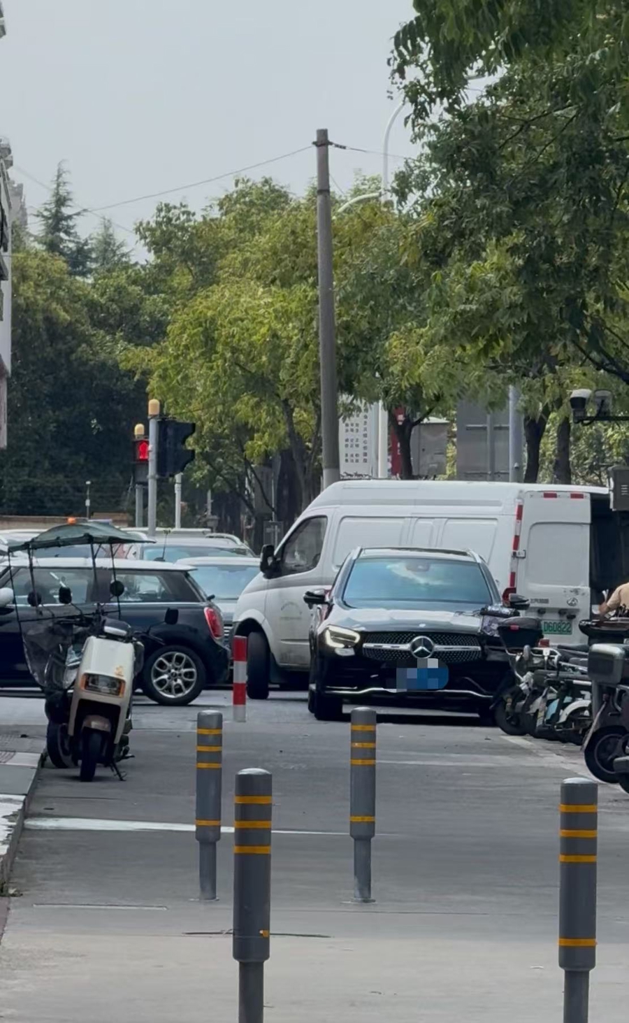 至于路口的车辆淤积,该负责人介绍称,附近其实有不少规范化的停车场,但到达这一路段有百米左右距离,且收费。相比之下,不收费的路口港湾式停车区就成了不少车主的首选。这一停车区实则属于附近小区的“红线”范围,即需要小区“三驾马车”共治的区域,此前因违规停放问题被多次投诉。目前月亮河碧园小区业委会正在征询意见,未来考虑加装道闸及收取一定停车费用对港湾式停车区进行规范管理,尽可能减轻车辆淤积,给行人让出通行区域。