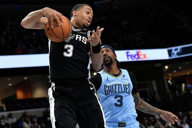 北京时间1月7日,NBA常规赛继续火热进行。马刺奔赴客场与灰熊展开对决,该场比赛,是双方本赛季的第三次交手。前两战都取得了胜利的圣安东尼奥,在此役还迎来了文班亚马的伤愈复出。米奇约翰逊的首发五虎是卡斯尔、福克斯、尚帕尼、科内特与巴恩斯,文班亚马、哈珀继续出任替补,瓦塞尔伤停。孟菲斯的首发五人是小贾伦杰克逊、兰代尔、斯潘塞、韦尔斯与GG杰克逊。贾莫兰特、科沃德、扎克埃迪、小皮蓬、杰罗姆、克拉克、康查尔7人伤停。4连败的孟菲斯,期待触底反弹。尽管人员不整,灰熊众将依旧展现了顽强的斗志。