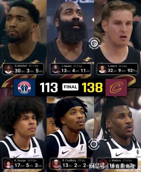 再看看米切尔,今天他同样表现出色,在球场上拼搏了28分钟。19次出手命中11次,三分球7投2中,拿到了30分,还抢下3个篮板,送出5次助攻,并且完成了2次抢断。不过,他也有6次失误,看来后场这两位核心球员,还需要一些时间来更好地适应彼此的节奏呢。