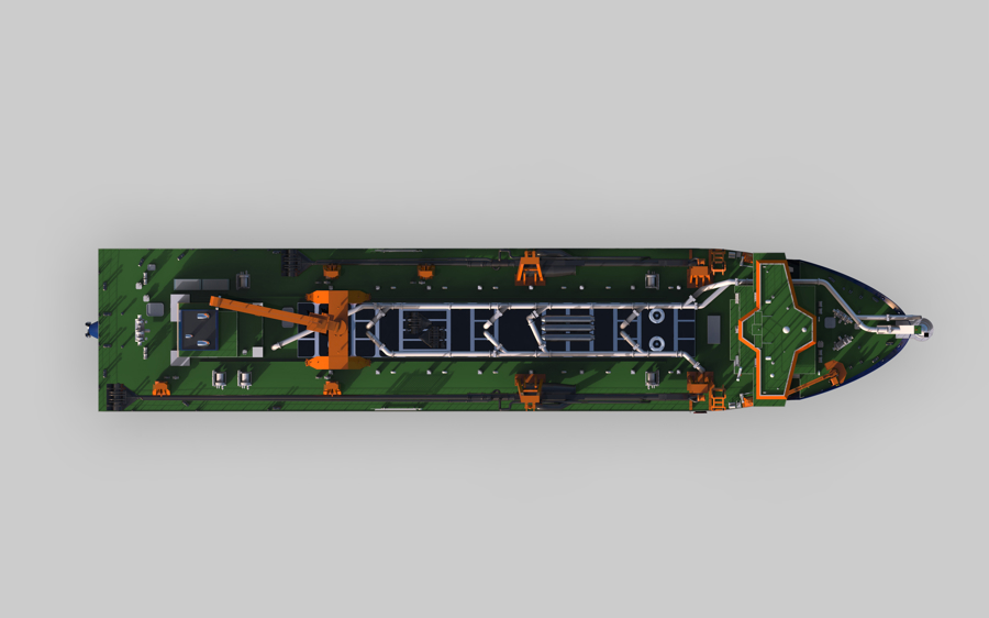 尤为关键的是,该船舶通过优化疏浚管线布局,巧妙融合了泥泵舱单独船艏布置与单独船艉布置的优点,使船舶重量载荷分配更为合理,显著提升不同装载工况下的船舶稳定性。