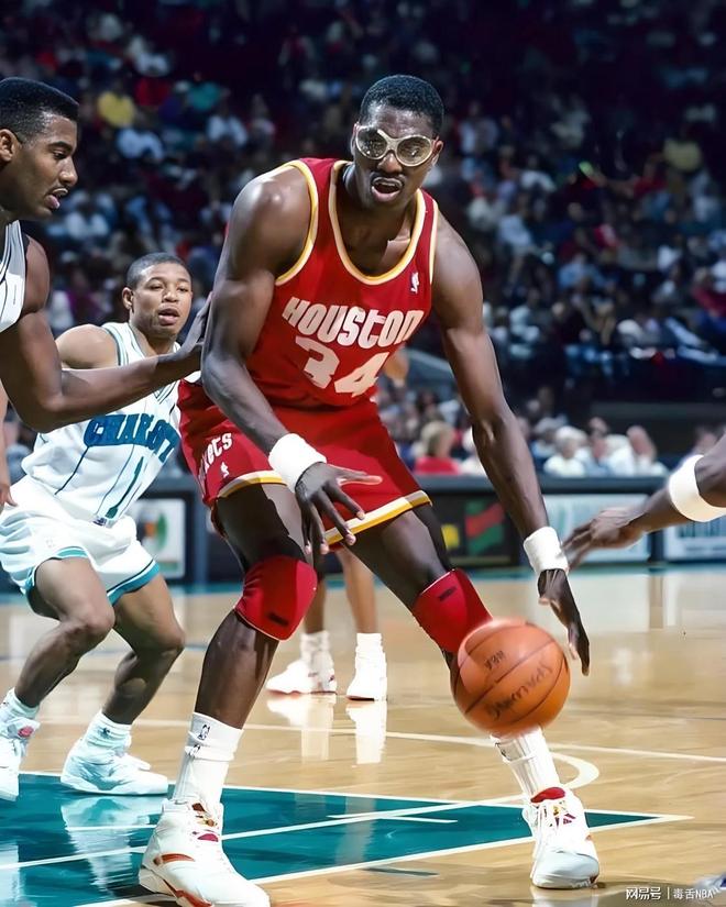 1984年的NBA,还是中锋说了算的年代,奥拉朱旺一出现,直接把中锋的天赋拉到了天花板。在球探眼里,他就是NBA内线的终结者——2米13的身高配2米24的臂展,又壮又灵活,篮下能碾着打,脚步还细腻,防守盖帽又快又准,得分手段也多。