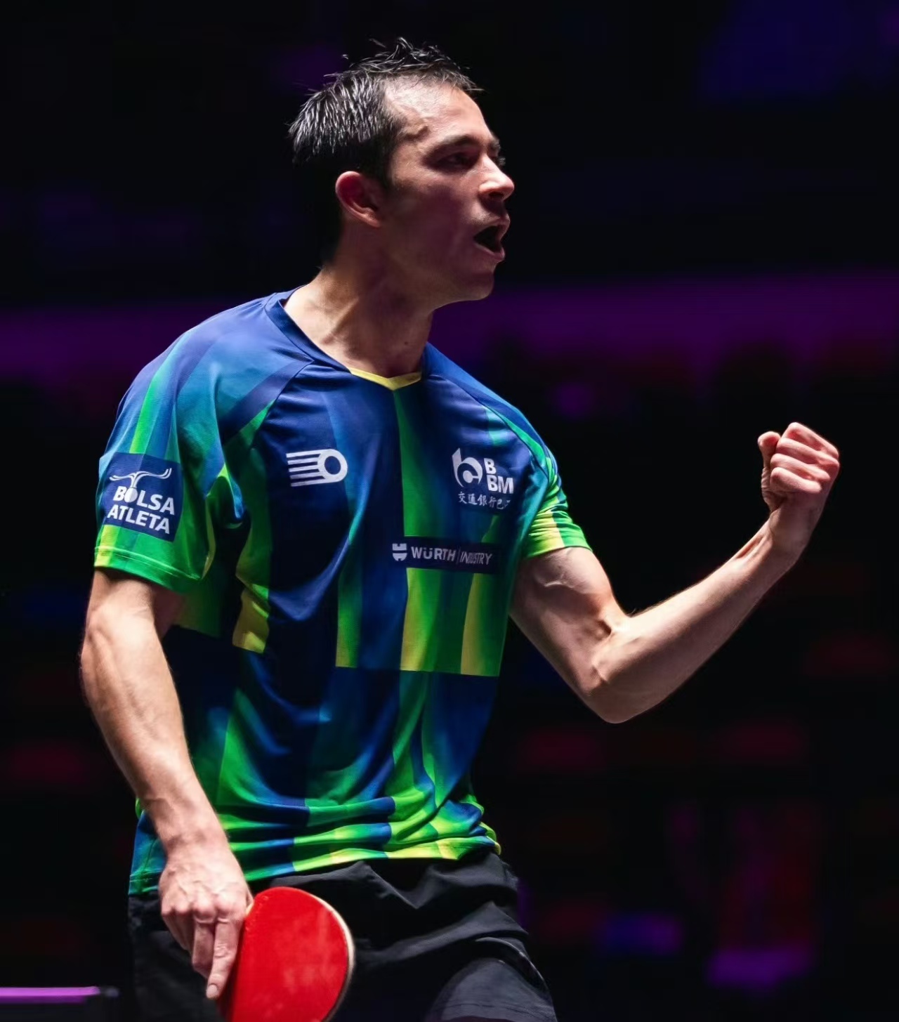雨果29岁,男单世界排名第4位,本次比赛晋级之路为:男单首轮3-0完胜韩国选手安宰贤;1/8决赛3-1战胜德国华裔名将邱党;1/4决赛4-2力克德国另外一位名将弗朗西斯卡,晋级男单四强。