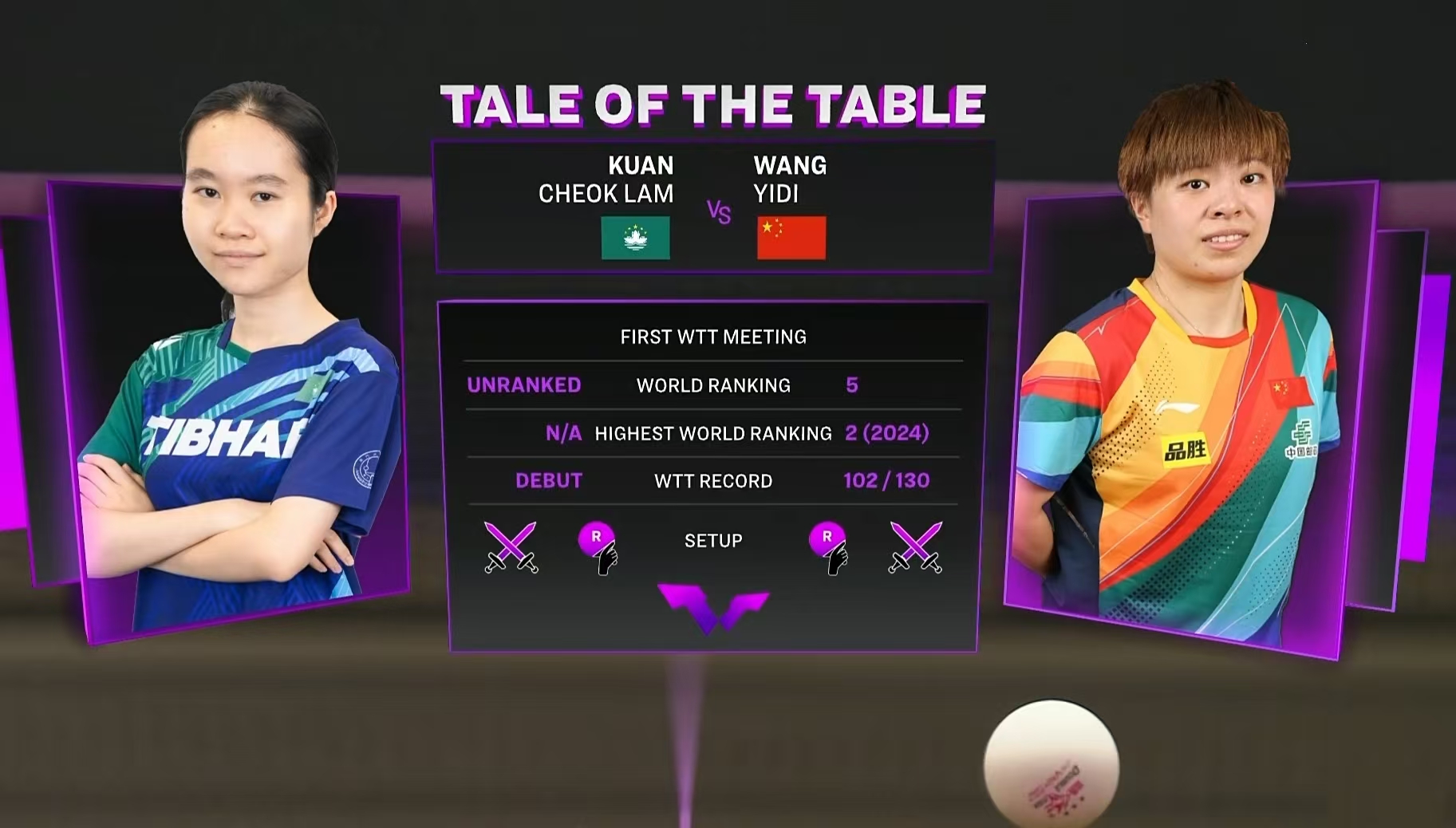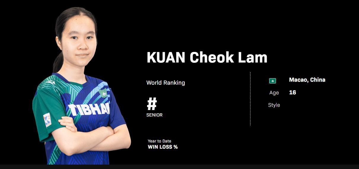 中国澳门选手关卓琳16岁,由于此前鲜少参加国际赛事,目前暂无世界排名,女单首轮对阵国乒球员王艺迪,想要取胜确实很难。