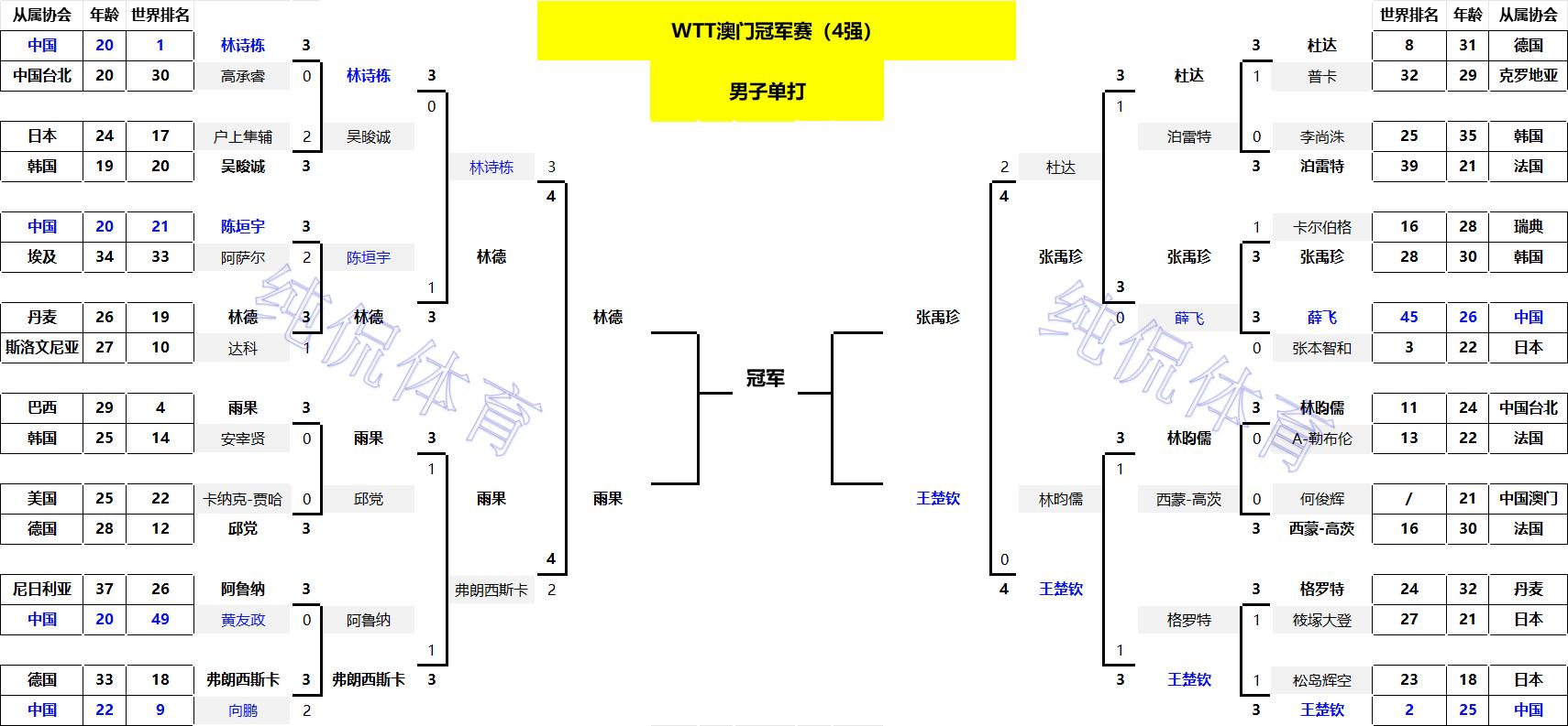 相对于国乒女单的强势表现不同,国乒男单就要惨烈很多,参赛6人(林诗栋、王楚钦、向鹏、陈垣宇、黄友政、薛飞)目前仅剩王楚钦一人,晋级到男单四强。