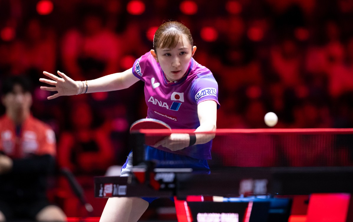 另外一场比赛,石洵瑶直落三局(11-3、11-8、11-6)横扫美国名将张安,张安在首局被判发球回抛违例(44.61°)后,第二局(37.11°)、第三局(34.98°)再度因相同问题被罚分,三次鹰眼挑战均失败。第三局石洵瑶主动挑战张安发球成功,直接获得关键分。