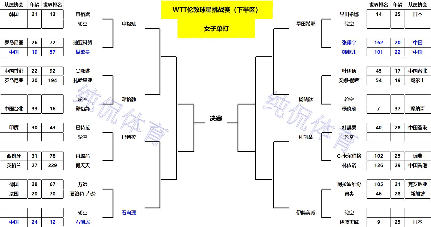女单正赛下半区签表