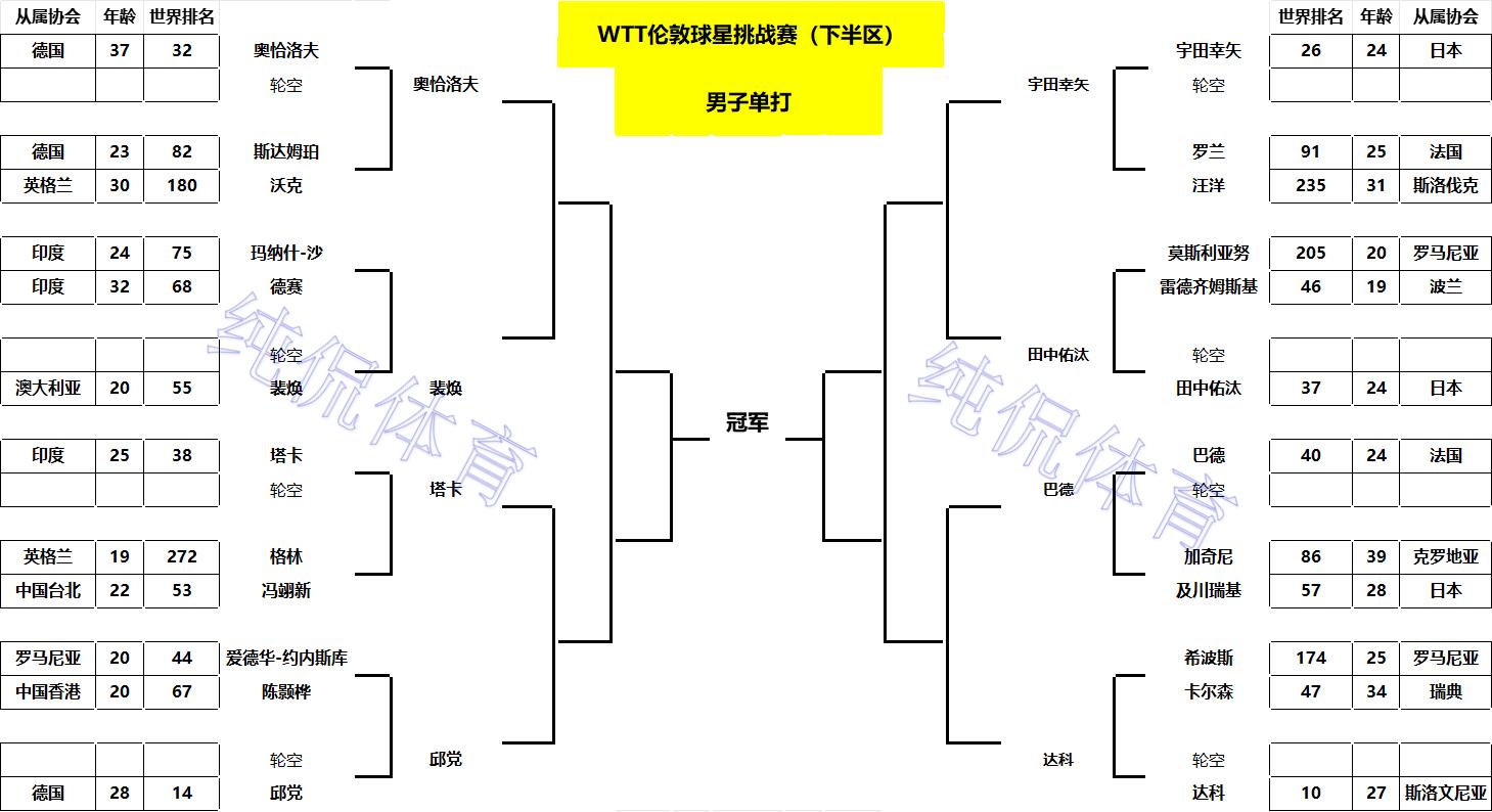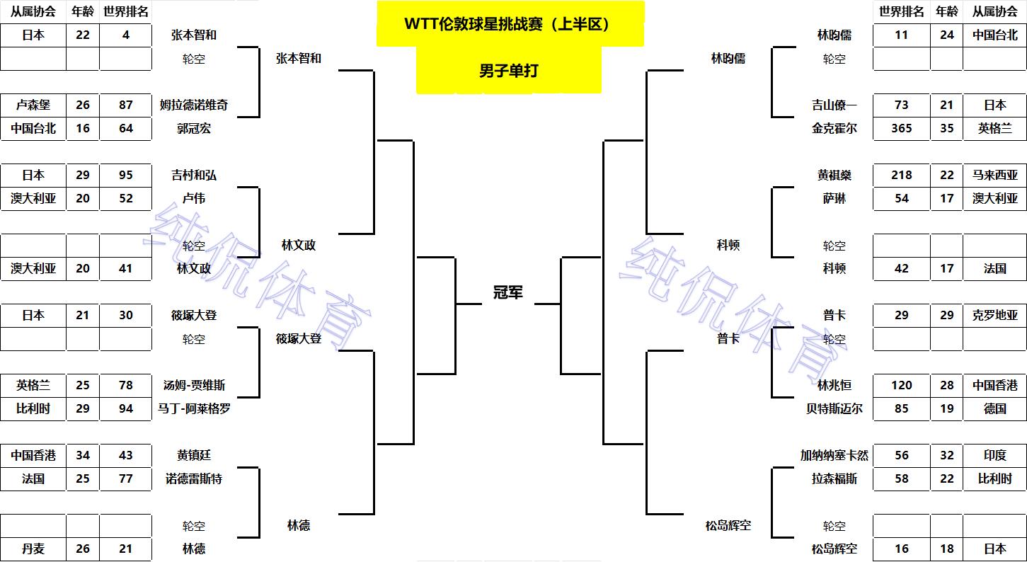 男单正赛上半区签表