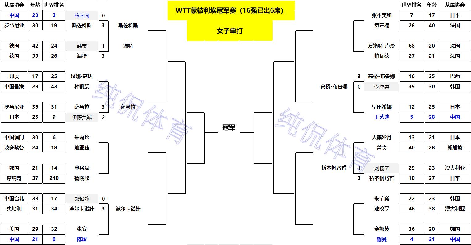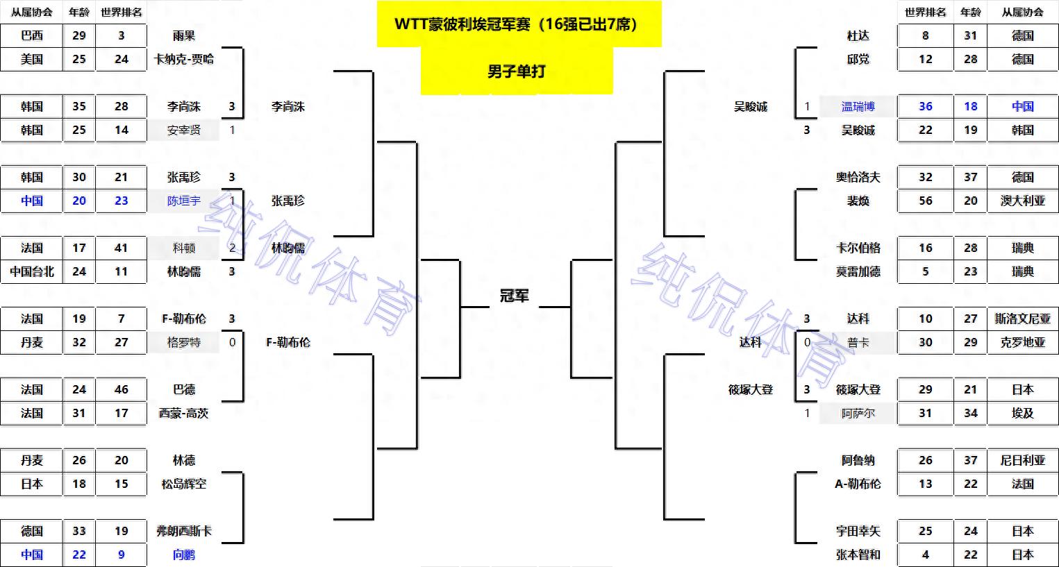 北京时间10月29日凌晨,乒乓球WTT蒙彼利埃冠军赛结束的第一天的争夺,国乒队伍可谓是损失惨重,出战的3名球员陈幸同、陈垣宇、温瑞博全部落败,出乎了球迷的预料!本人详细整理了最新签表,详情见如下图表,下面带来详细信息。