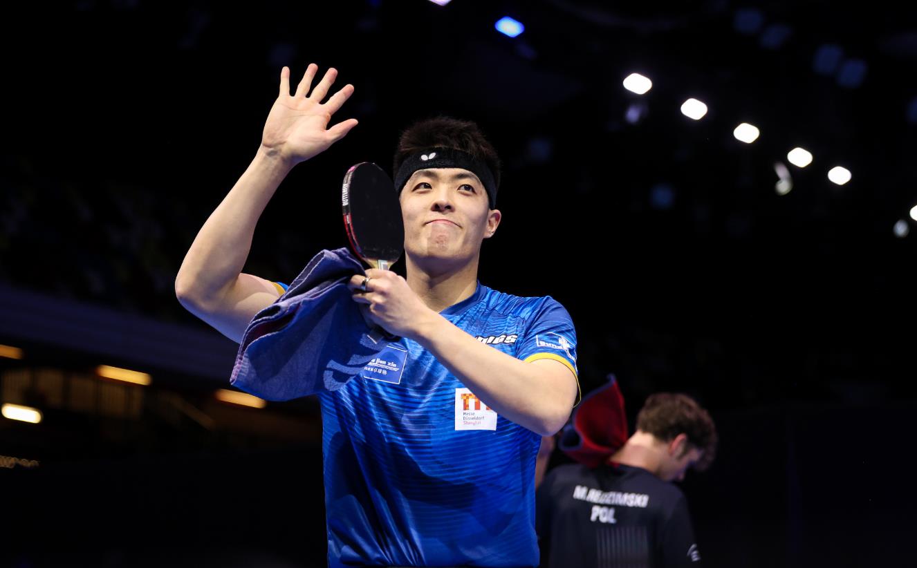 另外一场比赛,德国名将邱党迎战波兰选手雷德齐姆斯基,前面他先后淘汰日本选手宇田幸矢、瑞典选手卡尔森,并在1/8决赛中击败淘汰世界冠军奥恰洛夫的德国选手斯达姆珀,成为赛事最大黑马。