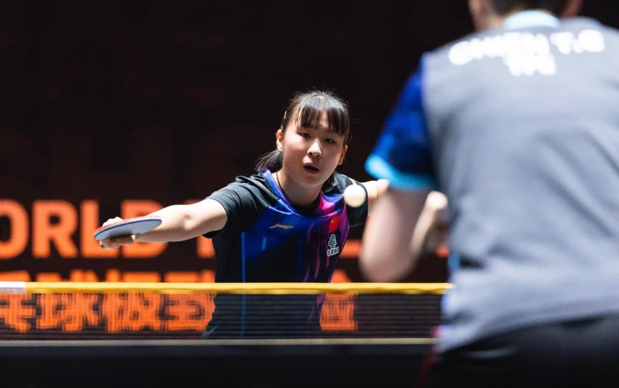 第二局简彤娟适应旋转后一度7-3领先,朱梓予通过减少失误+加转削球连追8分,以11-7逆转!赛后她坦言:“战术未变,关键在坚定执行与耐心周旋。”