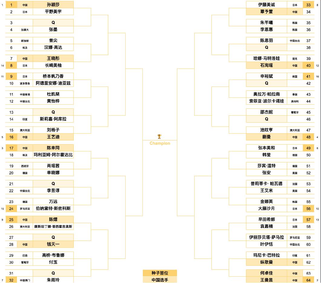 王晓彤首轮对阵长崎美柚,想要晋级比较有难度,今年长崎美柚的状态不错,进步也很明显,桥本帆乃香也在1/4区,很有可能跟王艺迪争夺一个八强席位。