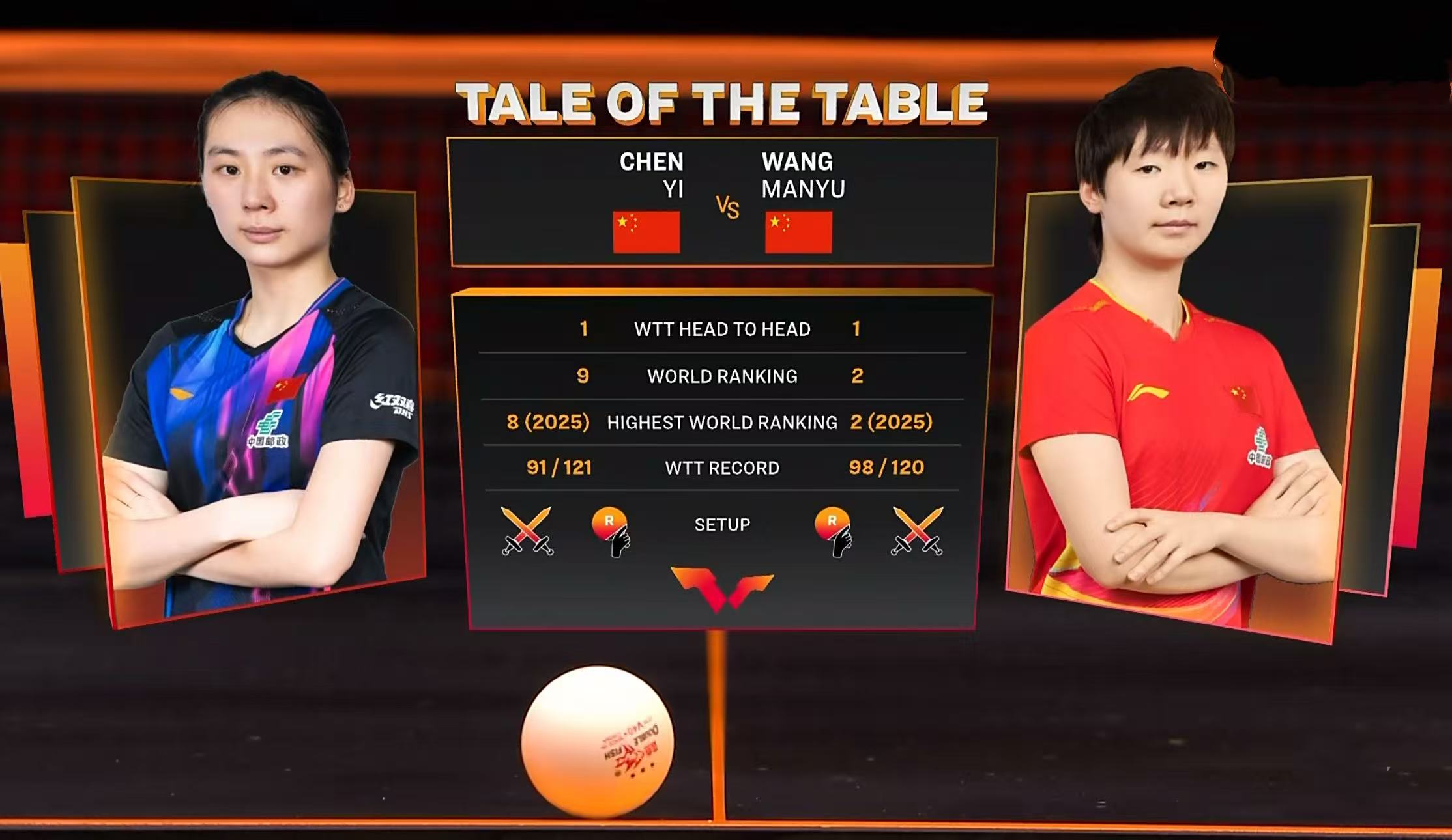 北京时间12月13日晚,2025年WTT总决赛进入倒数第二个比赛日的争夺,晚间场次女单半决赛将正式打响!两场比赛都是国乒内战:孙颖莎VS蒯曼;王曼昱VS陈熠,下面带来详细信息。