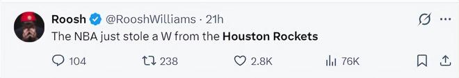 美记Roosh:NBA联盟又从火箭队手中偷走了一场胜利。