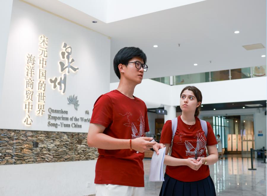 北大考古文博学院博士生王蕻荃迫不及待告诉记者,短短几天内,参与研学的30名学生特种兵式走访22个遗产点,每处都有图文并茂的解说与历史遗物展陈。“从书本走入遗址、从讲义踏进街巷,在泉州捕捉历史回响,是一件自然而然的事。有些遗址甚至是可触摸的,很多同学都特别兴奋,在实地体验中设身处地想象宋元时期泉州贸易的热火朝天。”海丝文明持续激荡新时代的回响。