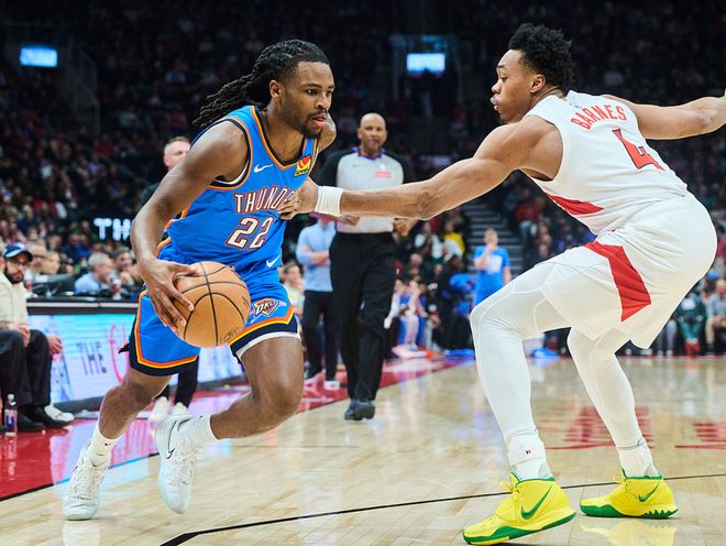 雷霆客场挑战猛龙,雷霆少了亚历山大、杰伦、米切尔,战力折损巨大,猛龙少了珀尔特尔,就纸面实力而言猛龙占优,首节比赛猛龙占据上风,一度领先10分,首节战罢领先7分,第二节雷霆单节赢了16分,半场战罢雷霆领先9分,第三节雷霆扩大优势,一度领先25分,三节战罢领先18分,第四节猛龙强势追分,一度追平分差,随后雷霆打出一波9-0锁定胜局,最终雷霆116-107击败猛龙。卡森16中11(三分5中4)得到27分8板6助、以赛亚乔14中7(三分11中6)得到22分2板3助2断、卡鲁索10中6得到16分2板4助2断。猛龙方面巴雷特15中8(三分6中4)得到21分8板4助、巴恩斯17中7得到15分3板7助3断4帽、莺歌14中6得到15分6板6助。