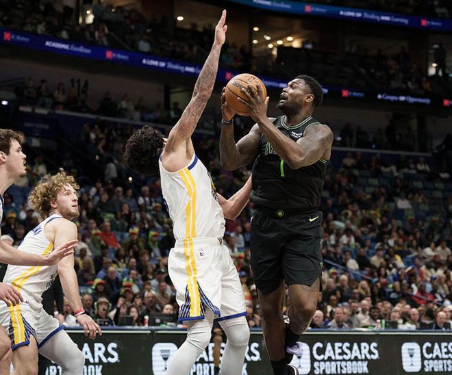 勇士客场挑战鹈鹕,勇士少了库里、巴特勒、霍福德、波津,鹈鹕方面穆雷复出,迎来赛季首秀,墨菲缺阵,鹈鹕先声夺人,一度领先20分,勇士强势追分,一度反超比分,但功亏一篑,最终鹈鹕113-109击败勇士。锡安21中11得到26分6板2断,萨迪克贝13中6得到18分6板,勇士方面梅尔顿21中8得到28分4板3助,穆迪13中7得到24分5板3助,波杰姆18中7得到16分15板3助2断。