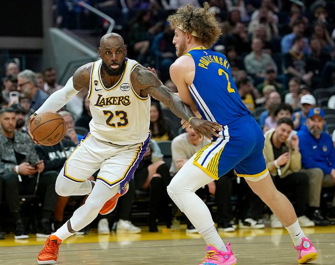 湖人客场挑战勇士,湖人少了八村,勇士少了库里、巴特勒、波津,就纸面实力而言湖人占据优势,首节比赛湖人取得13分领先,第二节湖人一度领先24分,半场战罢领先18分,第三节湖人一度把分差扩大到30分,三节战罢领先27分,第四节开局分差来到32分,比赛悬念失去,最终湖人129-101大胜勇士。詹姆斯13中7(三分6中4)得到22分7板9助,东契奇17中9(三分9中4)得到26分6板8助,里夫斯11中7(三分4中2)得到18分1板3助,肯纳德10中6(三分7中4)得到16分3板3助。勇士方面桑托斯12中6得到14分4板2助,佩顿10中6得到12分3助2断,穆迪11中4(三分10中4)得到12分3板3助2断。