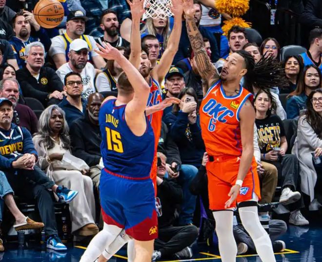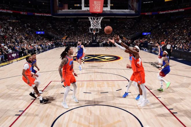 次节回来,大瓦兰和以赛亚-乔互飚三分,亚历山大杀入内线单手抛投得手,一人连拿6分,雷霆领先到两位数,打停掘金。大瓦兰连续篮下强攻得手,以赛亚-乔三分手起刀落再中,亚历山大连续突破造成犯规走上罚球线,雷霆将分差拉开至14分。约基奇被吹掩护犯规,下一回合亚历山大顶开沃特森也被吹进攻犯规。以赛亚·乔和多尔特再连中三分,斯特劳瑟和穆雷同样三记三分回应。沃特森突破漂移跳投命中,约基奇连罚带投连拿4分,半场战罢,掘金55-62落后雷霆7分。