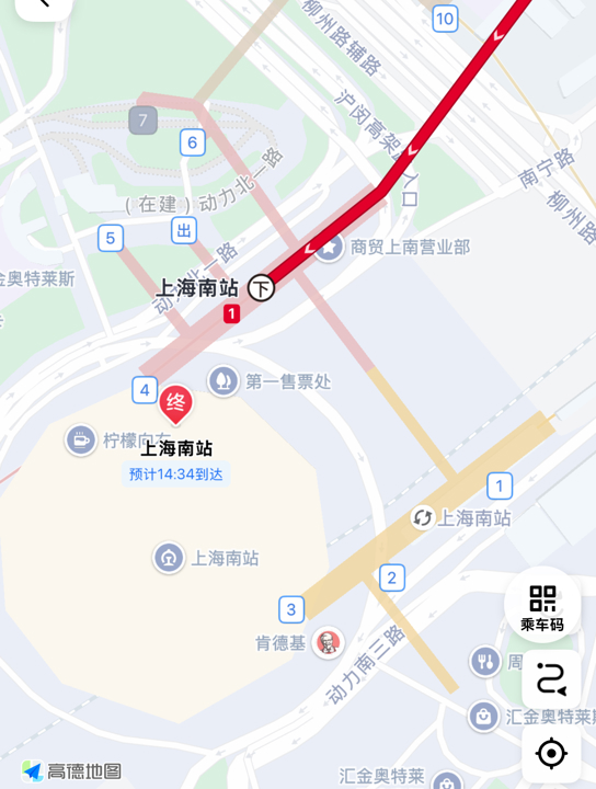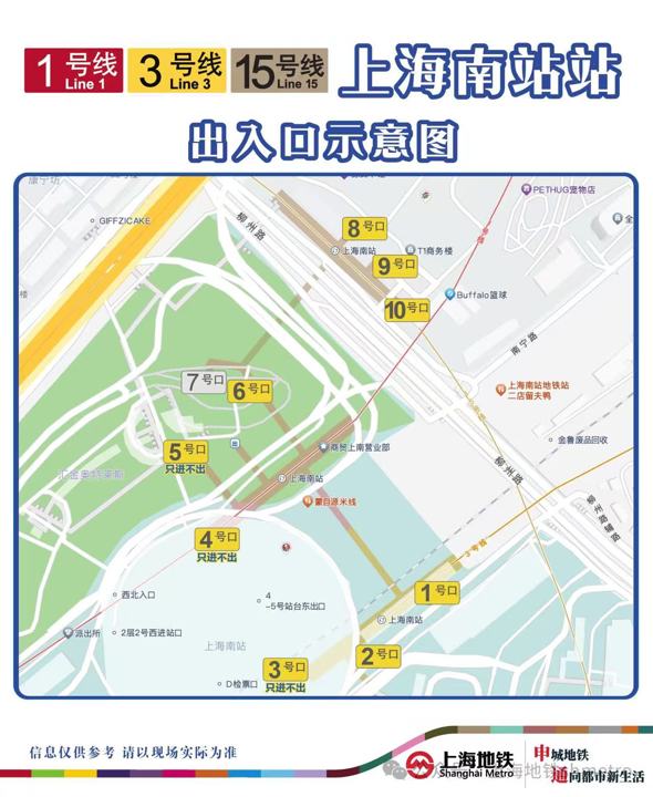 上海南站地铁各出口位置。