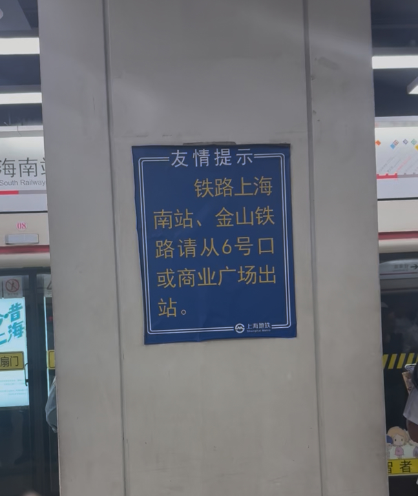 上海南站地铁站台指引。