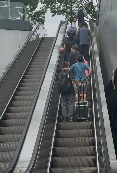 下午1时31分,记者到达北进站口,在没有任何行李的情况下正常步速共耗时7分钟,可以想像,如果长途出行携带行李,的确需要10分钟以上才能从地铁1号线走到北进站口,加之近日高温及大雨天气频繁,社交媒体上的抱怨并非空穴来风。经常出差的市民冯女士就深有感触:“这段路又晒又要绕远,走了两次之后就会尽量选择虹桥站出发的列车。”
