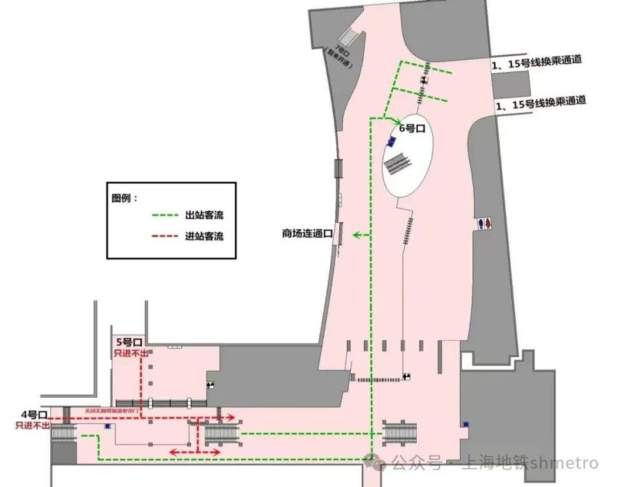 地铁进出站客流动线示意图。