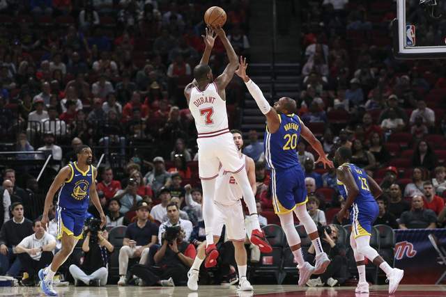 本场比赛火箭重回常规首发,勇士则缺兵少将。上来火箭进攻状态不佳,阿门突破打进首球,勇士则多点开花,先是连续冲击拿分,接着霍福德三分命中,追梦三分也进,梅尔顿持球三分也进,取得22-11领先。火箭调整后卡佩拉内线扣篮止血,谢泼德上来跳投命中,帮助火箭缩小分差,可勇士调整过来连续冲击内线拿分,火箭完全挡不住,随着内特·威廉姆斯篮下打进,首节打完勇士30-20领先火箭。