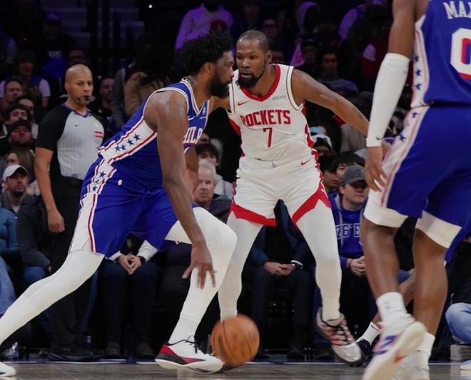 反观活塞这边,他们的核心后卫康宁汉姆今天伤愈复出,CC状态虽未完全恢复,但至少给球队注入了主心骨的力量。在人员对比如此悬殊的情况下,火箭能够取胜,很大程度上要归功于37岁的杜兰特。他完全不像一个步入生涯暮年的老将,背靠背作战的疲劳仿佛对他无效,依然打出了统治级的表现。整场比赛的战术基调非常清晰:双方都把防守重心放在内线,采用高强度的协防和轮转,不给对手任何轻松冲击篮筐的机会。结果就是两队在内线都打得异常“铁血”篮下终结效率低下,外线投篮同样手感冰冷。火箭除了杜兰特几乎全队哑火,活塞同样是“怎么投怎么不进”的尴尬局面。