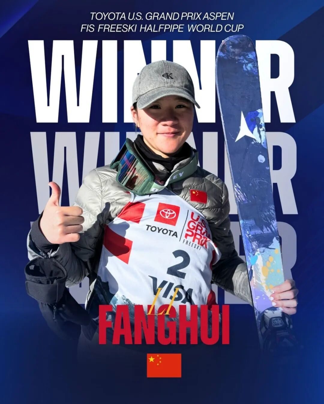 美国阿斯彭,2026米兰冬奥会前女子自由式滑雪世界杯的最后一站。U型场地项目决赛第一轮,李方慧从出发口滑下。风声贴着雪壁掠过,她在U型场地中完成了一套几乎没有瑕疵的动作——难度、完成度、风格全部到位。记分屏亮起,她滑出了全场最高分——93分,也就此力压英国选手佐伊-阿特金夺得本站比赛的冠军。