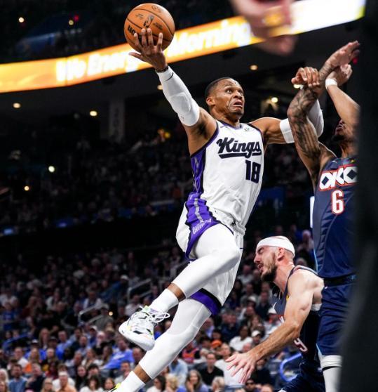 重返故地的威少,此役首发出战对阵自己的后辈亚历山大,尽管威少在自己熟悉的场地非常努力,但岁月不饶人,根本限制不住亚历山大的发挥,让MVP前两节保持了12中7的超高命中率,半场就砍下了17分,好在打替补的施罗德此战手感不错,前两节砍下15分,让国王半场结束只落后卫冕冠军8分,回到了中场更衣室。
