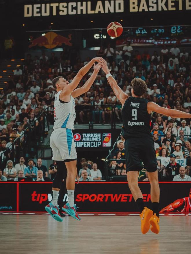 约维奇场均得分在塞尔维亚队内排第二,仅次于约老师(22.3分)。作为对比,2023年NBA首轮7号秀库利巴利,在欧洲杯场均出战18.8分钟,得到6.3分4.3篮板0.5助攻0.5抢断0.7失误,三项命中率:41.2%,21.4%,87.5%。