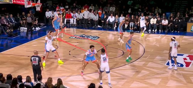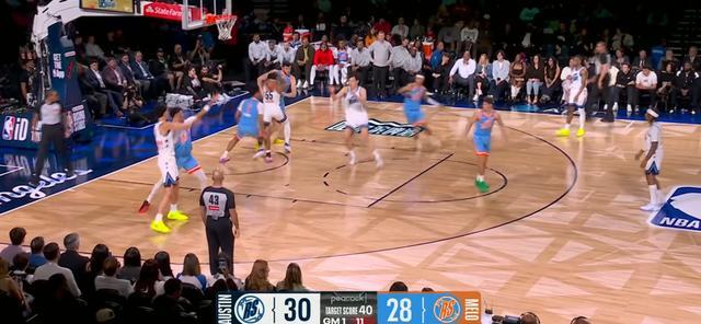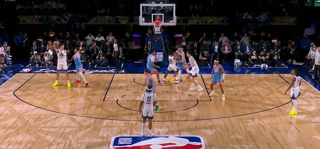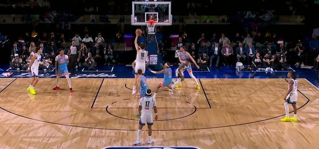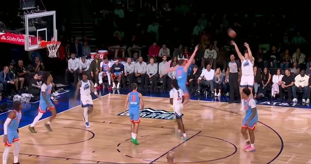 杨瀚森也不怯场,看得出来他来新秀赛就是享受比赛的,没有常规赛面临的那些上场时间压力,杨瀚森第一次出手就命中了三分,对位的还是克林根。
