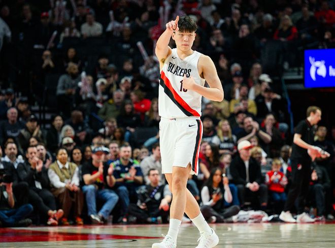 开拓者今日在主场135-118大胜76人。这场比赛开拓者早早保持大比分领先的情况下,末节来到垃圾时间,杨瀚森比之前垃圾时间的上场还要早。5分多钟就出现在了球场上。
