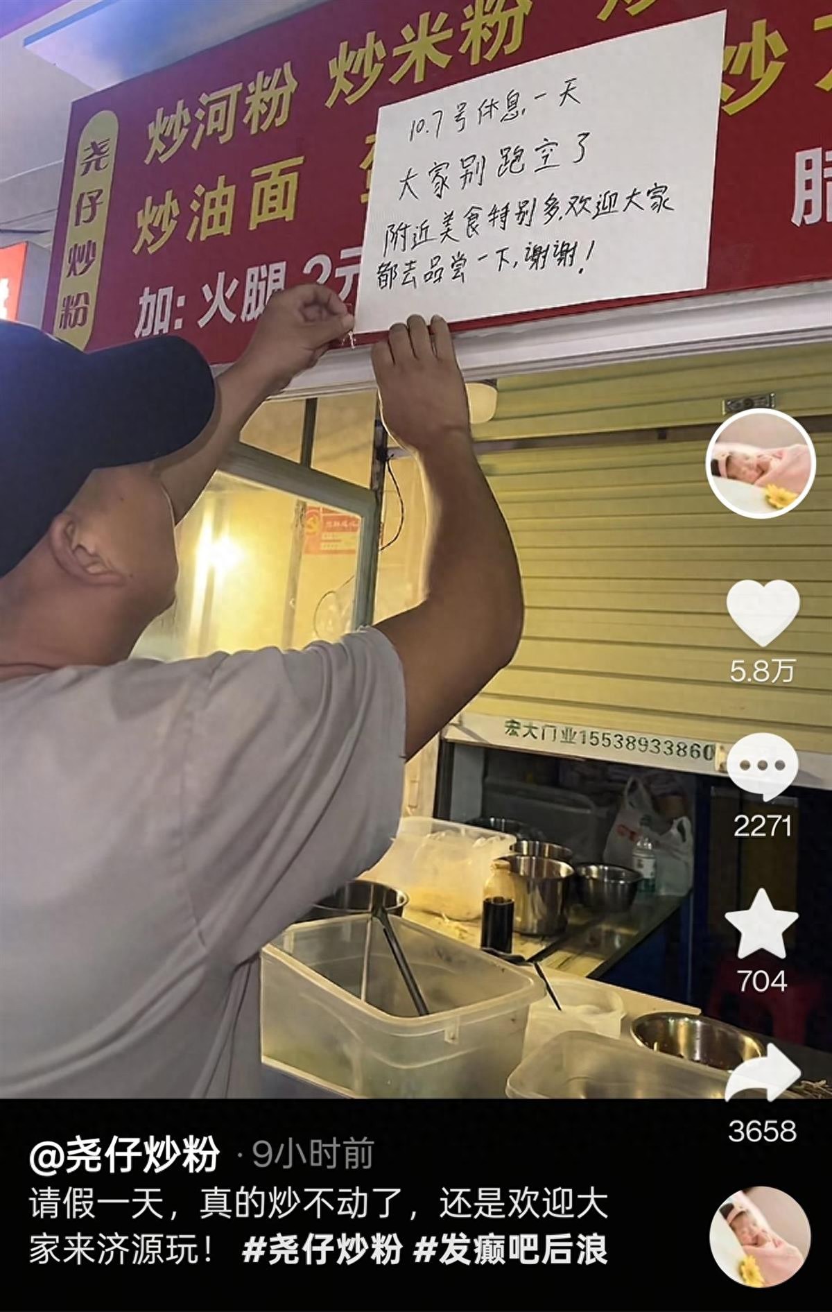 尧仔炒粉老板请假一天