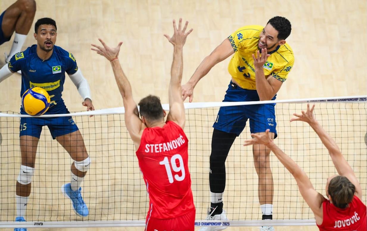 本届世锦赛前面两轮分别3-1战胜中国队,3-0横扫捷克队,但本组目前出线形势复杂,巴西2胜依然未能提前出线,仍有出局的可能,若本轮0-3输球,捷克3-0赢,那巴西就出局了,中国2连败也仍有出局的可能,但难度很大,要寄托巴西3-0或3-1战胜塞尔维亚,哪怕3-2赢都不行,最好是3-0。