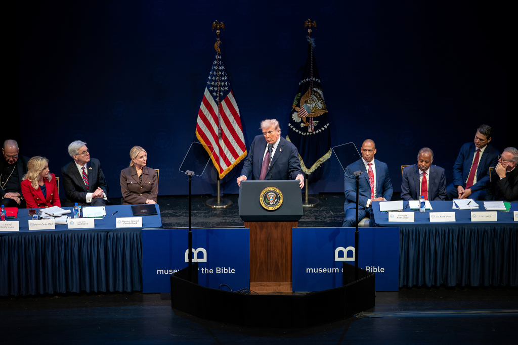 当地时间2025年9月8日,美国华盛顿特区,美国总统唐纳德·特朗普在圣经博物馆举行的宗教自由委员会会议上发表讲话。视觉中国 图
