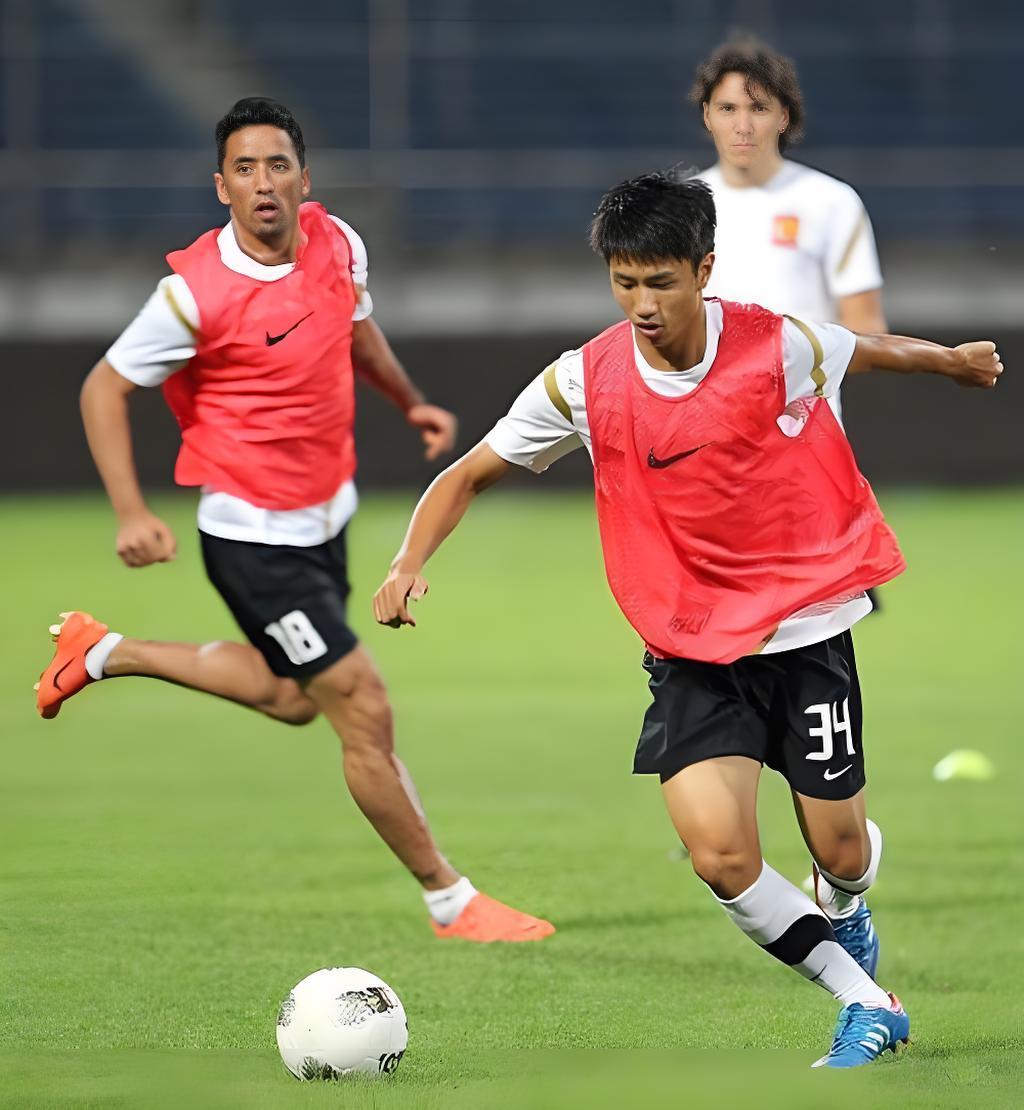 黄佳强跟巴里奥斯、克莱奥一起训练
