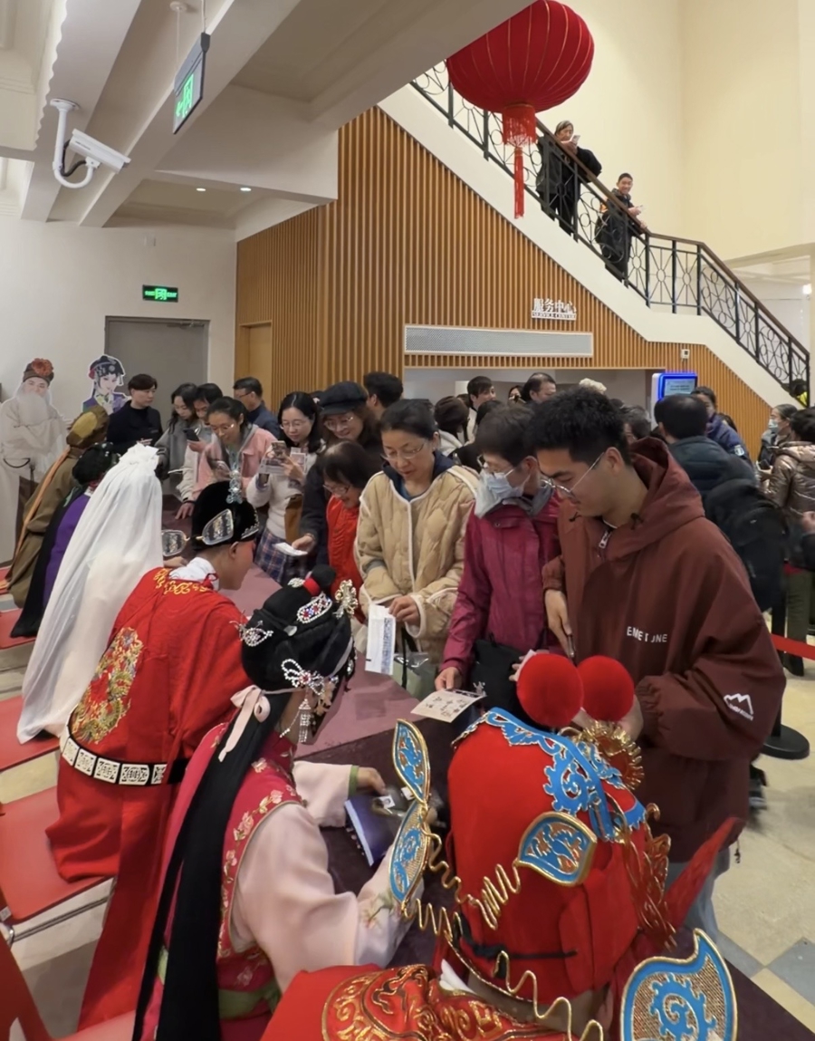 昨晚演出后临时加出的见面会,更成了演员与戏迷的温情相聚。主演们齐聚一楼大厅,签名、合影、畅谈,文创展台前人头攒动——《楼台断琴》主题明信片、书签、帆布包等周边产品被抢购一空。