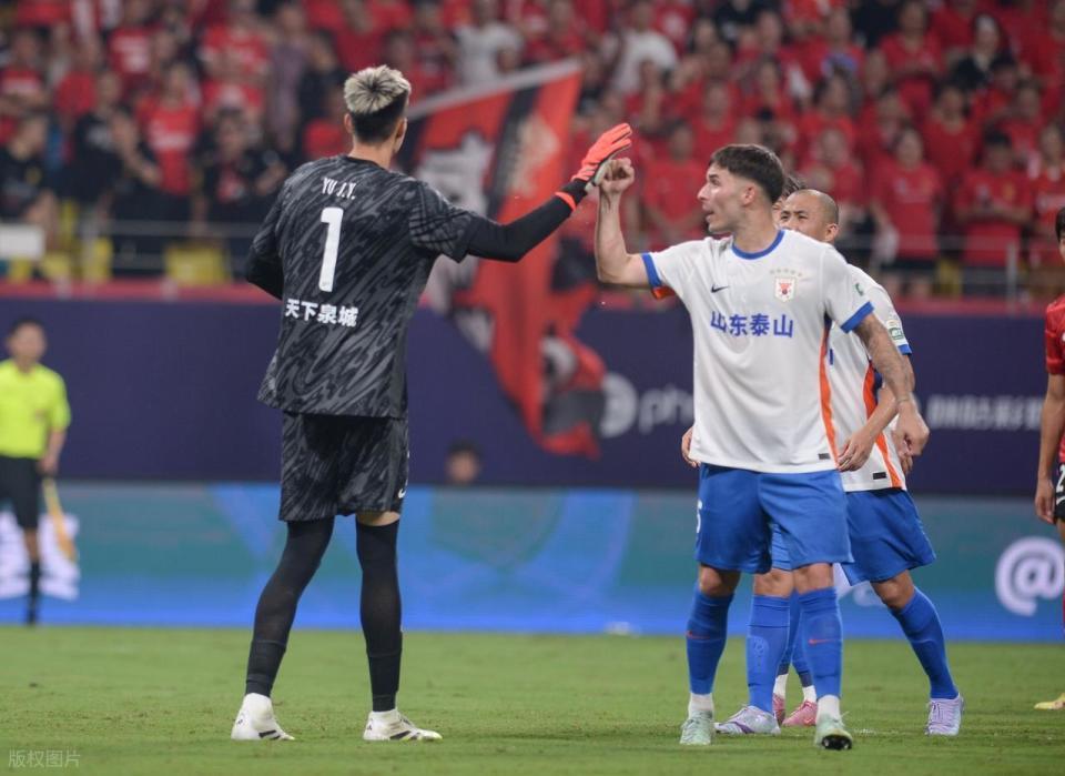 首先,于金永的门前反应与扑救能力,与王大雷相差甚远。王大雷作为泰山队的功勋门将,驰骋中超多年,以反应迅捷、扑救精准、擅长扑点球著称,即便如今年满35岁,依然是中超顶级门将,多次在关键时刻上演神扑,为球队守住胜局。而本场比赛,于金永的表现堪称“灾难性”:面对申花的近距离射门,他反应迟缓,多次未能及时做出扑救动作;面对远射和角度刁钻的射门,更是毫无招架之力,9个丢球中,有不少是可以通过及时反应化解的机会,却被他轻易目送入网。