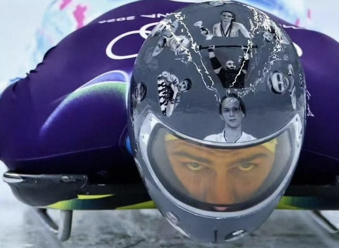 他佩戴的定制头盔上,印着超过二十名乌克兰运动员、教练与儿童的照片——举重运动员阿丽娜·佩列古多娃、冰球运动员奥列克西·洛吉诺夫……据他陈述,这些人均在2022年俄乌冲突发后丧生。