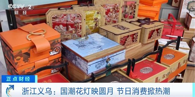 国潮风的热度,不仅体现在花灯上。记者在市场里看到,国风月饼礼盒、服装饰品等产品,都成了今年的 “新宠”。