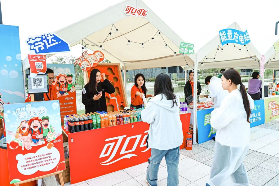 当日下午,美妆潮玩生活派对活动已在此聚拢人气,这场市集藏着穿越千年的“时辰奇遇记”,以“未、申、酉、戌”4个古韵时辰为线索,串联美妆颜究所、潮玩造物局、美食补给站、露营松弛区等四大区块,结合趣味任务与终极挑战,打造沉浸式“闯关+解压”双重体验。可口可乐互动区域集中各种打卡小游戏,“一路畅赢”就可以获得品牌周边礼物,为音乐派对加满畅爽能量。上海科学技术职业学院依托上海市院校创业指导站开展科创文创融汇教育活动,苜艺千蓿、金翠云冠等学生项目集AI设计、数字媒体于一体,展现学生将前沿科技转化为文化创意的实践能力与创业潜力。另外更有文化与潮流的惊喜联动,以奉贤锦带纹样为灵感,融入国潮“谷子”设计,将纹样里的吉祥寓意藏进吧唧、冰箱贴、贴纸等随身小物里,让传统美学玩转生活。