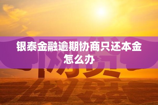 大家好,今天咱们来聊聊一个比较常见但又让很多人头疼的问——银泰金融逾期协商只还本金怎么办?网贷和信用卡的普及,不少朋友都会遇到还款压力,有时候因为各种原因逾期了,就想和平台协商还款。这其中,银泰金融一个比较知名的网贷平台,很多用户逾期协商时都碰到这样的问平台只同意你还本金,不承认或者不减免逾期利息和罚息。那遇到银泰金融逾期协商只还本金怎么办呢?别急,今天咱们就来好好聊聊这个话题,帮你理清思路,找到解决办法。