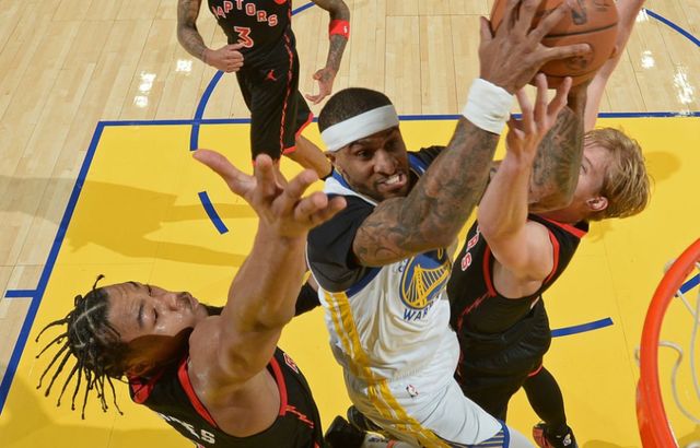 上半场,猛龙三人得分上双,奎克利18分2篮板3助攻,巴恩斯14分4篮板6助攻,马穆凯拉什维利11分8篮板3助攻。勇士只有库里一人得分上双,他得到12分,投篮13中5,三分6中1。