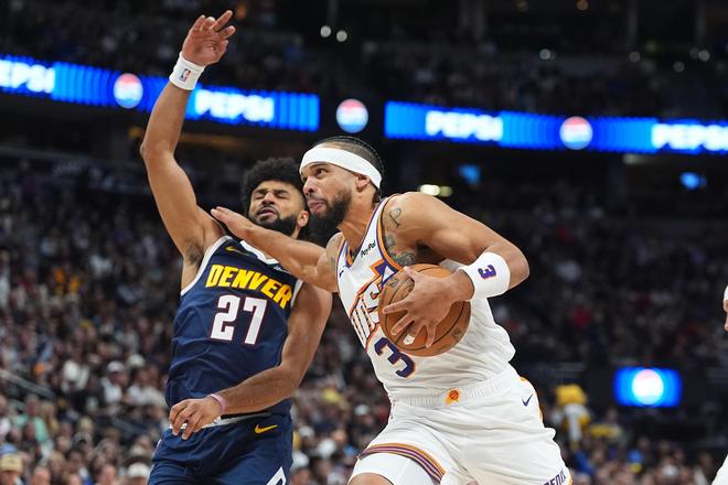 在揭幕战戈登爆砍50分加时遗憾不敌勇士后,掘金队次战坐镇主场迎来与太阳队的较量,后者休赛期拆散三巨头,逐步进入重建阶段,整体竞争力下滑严重。