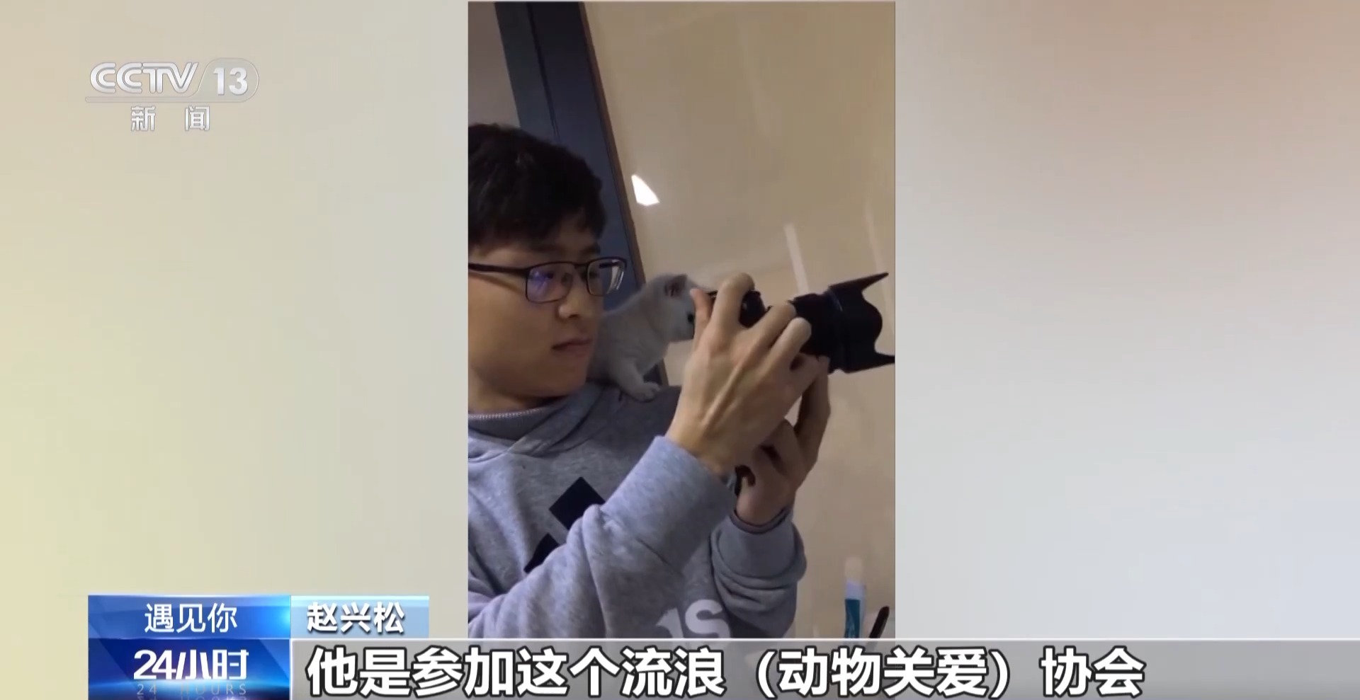 赵兴松:他的性格很开朗,对人还很友善。在上大学的时候,他参加流浪动物协会,我们替他们养这些猫。