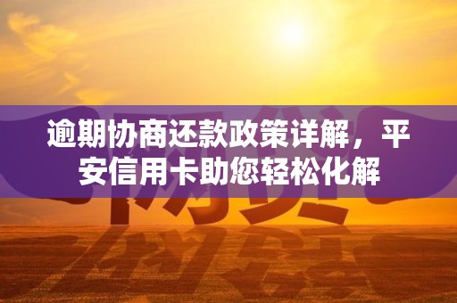 逾期协商还款政策详解是指银行与持卡人之间达成的一种还款协议,目的是帮助因各种原因导致信用卡逾期的客户,重新规划还款计划,减轻还款压力。平安信用卡助您轻松化解这一难题,提出多种灵活的还款方案,比如分期还款、延期还款等,帮助客户度过财务困境。逾期协商,还款人可以避免高额罚息和信用记录严重受损,从根本上改善自身的信用状况。平安银行秉持以客户为中心的服务理念,精确匹配客户的还款能力,最大程度实现资源优化配置,真正让客户感受到“还款无忧”的便利。